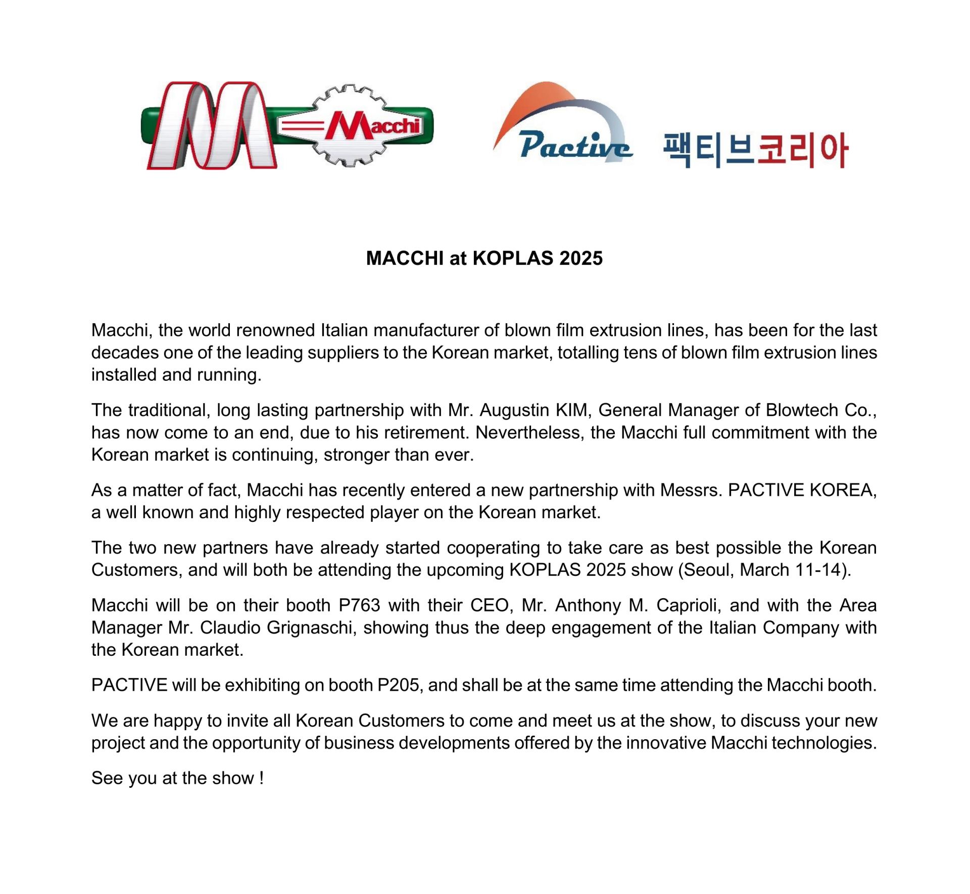 MACCHI ALLA FIERA KOPLAS CON IL NUOVO PARTNER PACTIVE KOREA